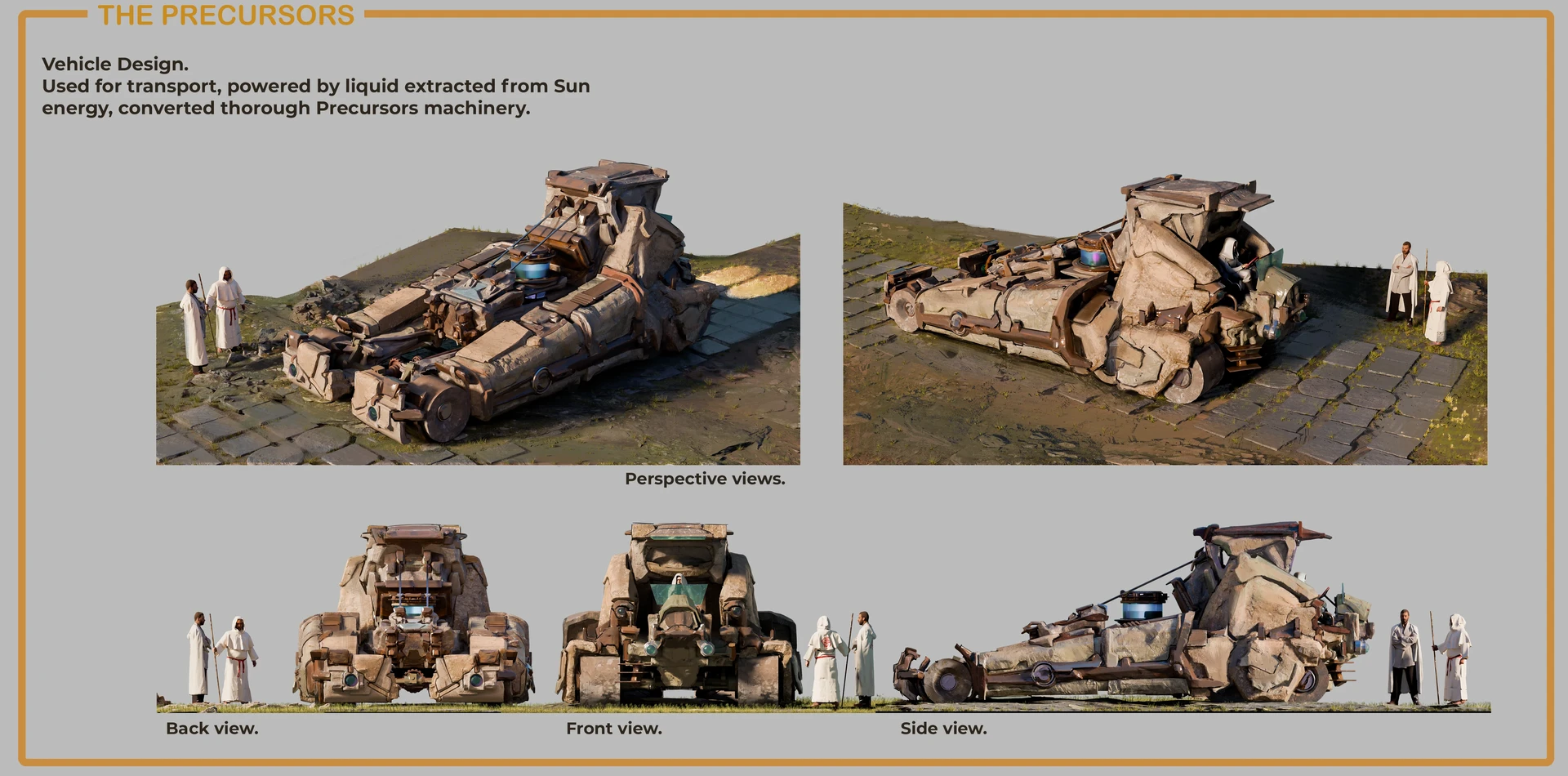 Fuel-powered machines existed, though not in abundance. They were hybrid creations: part functional technology, part ritual object, blending engineering with symbolic design. Imagine crude-looking, wheeled or crawler vehicles, but ornamented with metal engravings so they would harmonize with the structures they serviced.